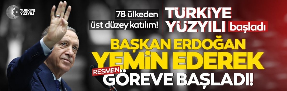 Başkan Erdoğan, TBMM'de yemin ederek görevine resmen başladı. Erdoğan, mazbatasını TBMM Geçici Başkanı Devlet Bahçeli'den aldı. Başkan Recep Tayyip Erdoğan'ın, Cumhurbaşkanlığı Külliyesi'nde düzenlenecek "Göreve Başlama Töreni"ne, 21 devlet başkanı ve 13 başbakanın yanı sıra çok sayıda bakan ile aralarında Türk Devletleri Teşkilatı, NATO ve İslam İşbirliği Teşkilatı'nın da olduğu uluslararası kuruluş temsilcileri katılıyor...