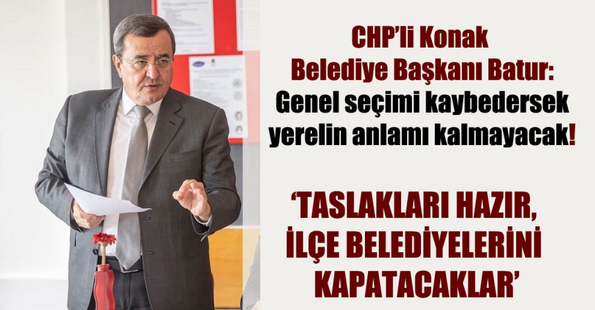 CHP’li Konak Belediye Başkanı Abdül Batur, “Genel seçimi kaybedersek yerelin anlamı kalmayacak. Taslakları hazır. İlçe belediyelerini kapatacaklar" dedi.