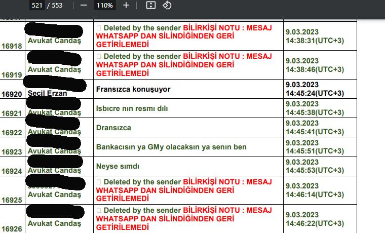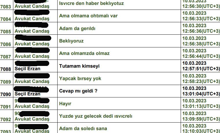 Seçil Erzan’ın kırdığı telefondaki mesajlar sonunda bilirkişi tarafından raporlaştırıldı ve rapor dava dosyasına girdi. Seçil Erzan’ın hayali fon işinde mağdur olduğunu söyleyenlerle 2023’ün ilk aylarında yaptığı mesajlaşmaların ortak özelliği, para verenlerin o aşamada para yatırdıkları sistemin bankaya ait bir faaliyet olmadığını net olarak bilmeleri.