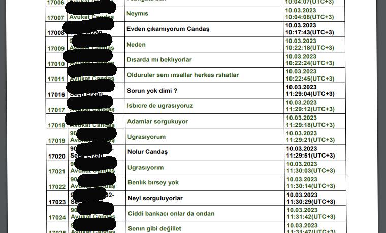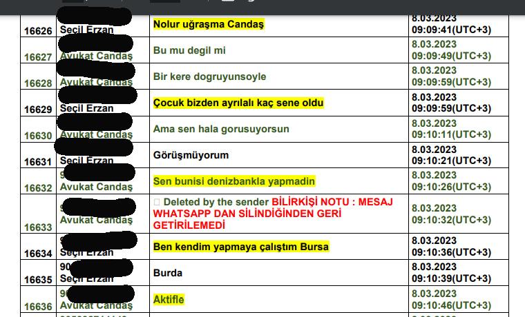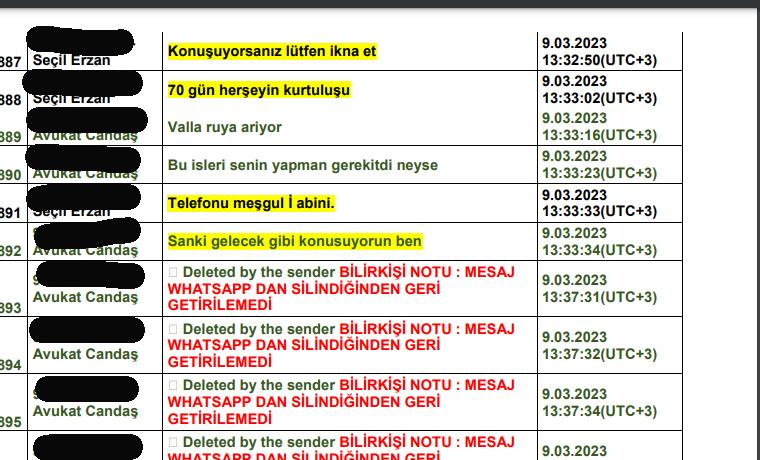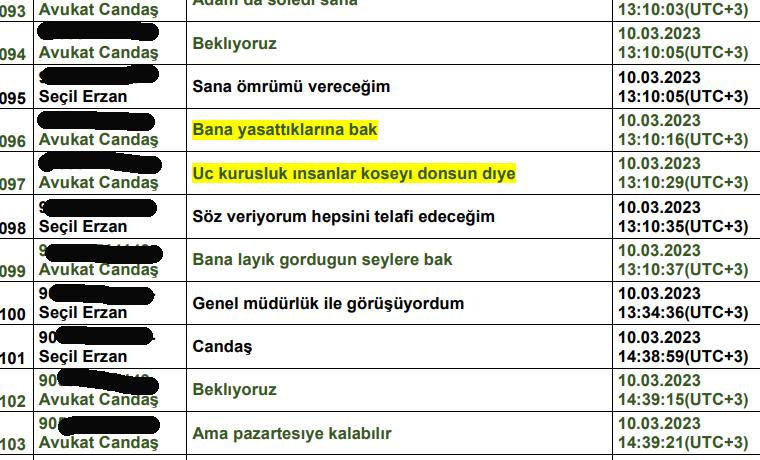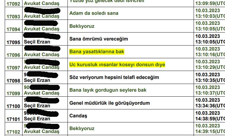 Seçil Erzan’la Candaş Gürol arasındaki farklı günlerde yaptığı Whatsapp yazışmaları şöyle: